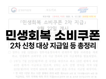 민생회복 소비쿠폰의 1차 신청 기간이 종료되고, 이제는 9월 22일부터 신청이 시작되는 2차 소비쿠폰의 신청 기간을 앞두고 있는데요. 이번 글에서는 민생회복… 민생회복 소비쿠폰 2차 신청 대상, 지급일 알아보기