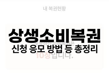 최근 소비를 활성화하기 위한 다양한 지원 사업이 진행되고 있습니다. 그중 상생소비복권은 상생페이백의 부가적인 이벤트로 진행되는 사업으로 상생페이백을 신청한 사람 중… 상생소비복권 신청, 응모 방법과 기간 총정리